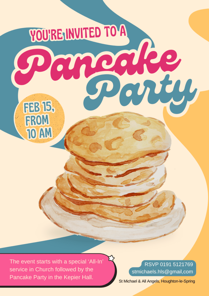 Sunday 15th February in the Kepier Hall following the Eggs & Ashes ‘All-In’ Service at 10am in Church! ![]()