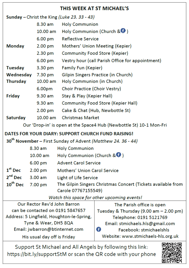At 10.00 am our service of Holy Communion will be led by Rev’d John Barron with preaching from Rev’d Margaret Lee.